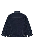 Denim jacket with logo. This model features contrasting stitching and double patch pockets on the chest.