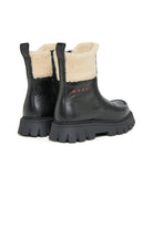 Leather Chelsea boots with soft teddy collar. Embossed stitching on the upper and the institutional logo on the side add character and recognition. A perfect model to face winter with elegance and comfort.