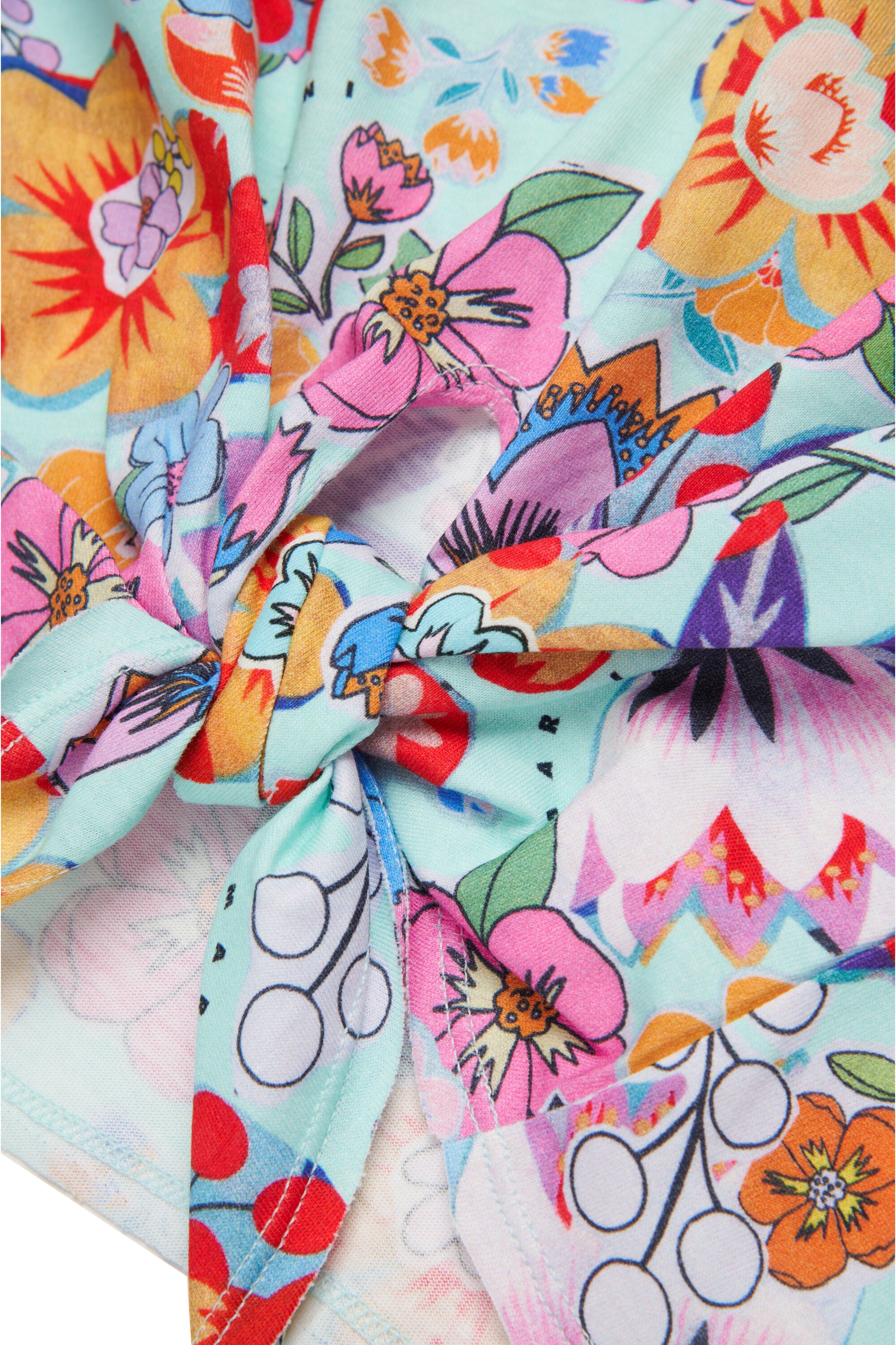 Holiday allover T-shirt with knotted fabric