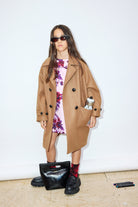 Double-breasted egg-shape cloth coat with light padding for a comfortable, modern fit. The dual-color melton collar adds an original touch, while the coated maxi buttons give the garment character.