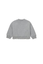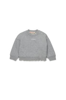 Long-sleeved crew-neck sweatshirt enhanced by flounces on the bottom that give a touch of movement and femininity. Perfect for original casual looks.
