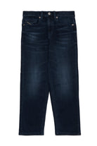 D-Maki relaxed fit jeans in blue-black faded denim with a street attitude. A relaxed oversize silhouette from comfortable waist to ankles, soft on the leg. Inspired by the '90s, the loosest jeans in the DIESEL collection.