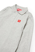 A long-sleeved polo shirt in soft cotton jersey, with a classic cut and two-button closure on the front. The design is enhanced by a red heart-side applied D patch, adding a distinctive touch.