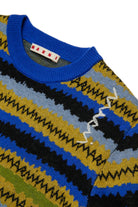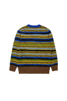 Long-sleeved crew-neck pullover in a soft and warm wool-blend knit. The vibrant Rock Doll all-over print, enhanced by irregular jacquard stripes, lends a touch of originality, while the Marni Handmade logo on the shoulder adds a fine detail.