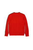 Long-sleeved crew-neck pullover in wool blend, featuring an original colorblock design with contrasting construction: shaved knit on the front and ribbed knit on the back. The hand-embroidered Marni Handmade logo on the shoulder adds a handcrafted detail, enhancing the uniqueness and quality of the garment.