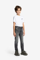 1995 slim fit jeans in gray worn-effect denim with an iconic attitude. A slim fit model with a straight-cut leg. A jeans dedicated to denim lovers, suitable for any situation.