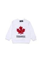 Long-sleeved crew-neck sweatshirt with logo Sport where the Canadian Maple Leaf, an iconic symbol of the Dsquared2 universe, is reinterpreted with a flocked finish with a ruined effect. A garment that combines style and practicality.