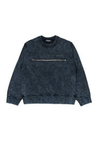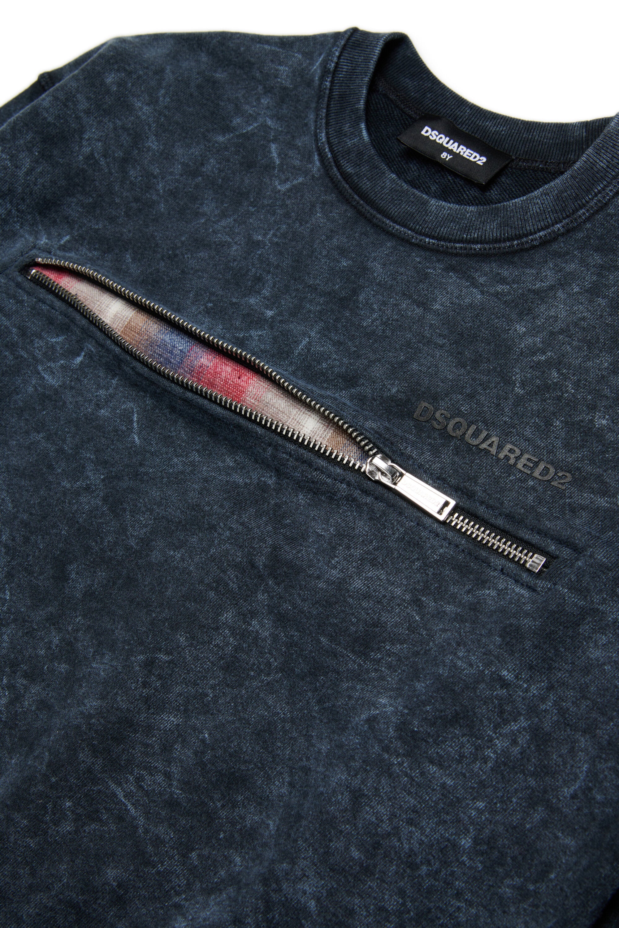 Long-sleeved marbled-effect crew-neck sweatshirt. Front pocket with check-check flannel inner adds a stylish touch between grunge aesthetic and functionality.
