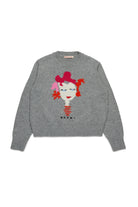 Long-sleeved crew-neck wool-blend knit pullover embellished with Marni Flower graphics made of inlays and accompanied by the Marni logo. A warm and comfortable garment, perfect for standing out in style.