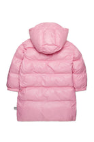 Long padded jacket with asymmetrical bottom