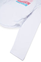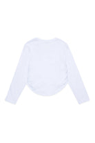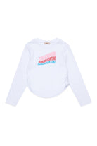 Soft cotton jersey T-shirt with long-sleeved sleeves. Gathers at the hips and a rounded bottom draw an original silhouette, emphasized by the multicolored "Number Twenty One" graphic on the chest.