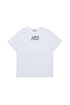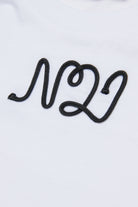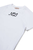 Soft cotton jersey T-shirt with short-sleeved sleeves. A simple yet distinctive garment thanks to the cursive logo N°21 made of contrasting color drawstring on the chest.