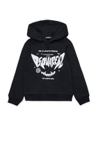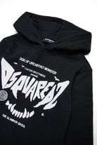Long-sleeved hooded sweatshirt with Dsquared2 glossy effect print in contrasting color. The graphic inspired by horror imagery gives an original and out-of-the-box aesthetic.