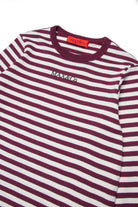 Striped micro ribs sheath dress made of yarn-dyed cotton. The asymmetrical bottom and rubberized logo give personality to a garment ideal for modern, casual looks.