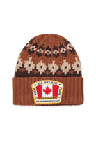 Norwegian-patterned wool-blend beanie. A warm and enveloping accessory, worked with chunky yarn and embellished with a Canada-inspired patch, a clear reference to the roots of the Dsquared2 world.