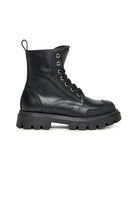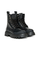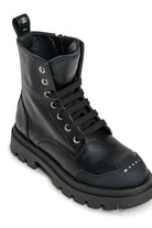 Laced boots with contrasting official logo printed on the toe. Zip closure on the inside ankle. Calfskin upper and lining. Thermoplastic track sole. Perfect for a street-style outfit. Made in Italy.