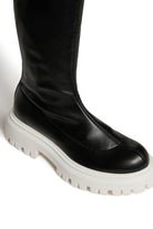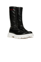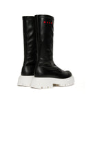 Modern-design long boots. Featuring a contrasting official logo on the sides. Overlock stitching at the top. Leather blend lining. Contrasting thermoplastic track sole. A sophisticated design, suitable for less formal occasions. Made in Italy.