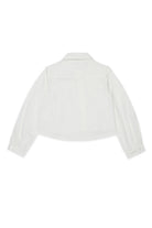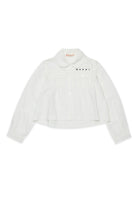 Long-sleeved poplin shirt. A refined and versatile garment featuring breast pockets with gathers and an embroidered institutional logo. The regular fitting is enriched by a slightly asymmetrical bottom, which lends originality to the design.
