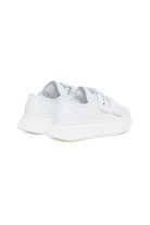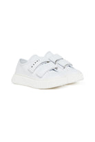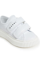 Low top trainers with double strap closure. Institutional logo printed in contrasting colour on one of the straps. Calf leather upper and inner lining. Thermoplastic rubber sole. Made in Italy.