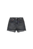 Black denim shorts with raw cut hems
