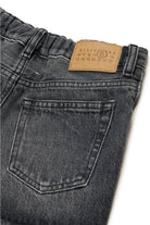 Black denim short pants with gradient contrasting colors. Raw cut hem at the bottom. Iconic seam at back. Made of 100% cotton.