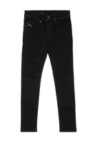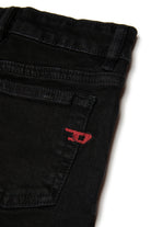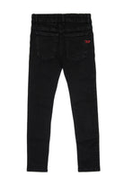 Five-pockets jeans with skinny fit and punk attitude. Low waist. Made of soft-handed black denim. Featuring a contrasting color embroidered "D" logo on the back pocket. The design features an adjustable waistband and elastic closure.
