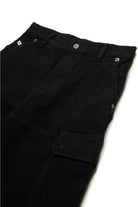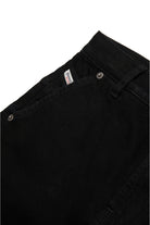 Short jersey pants. Made of black denim with a clean look, characterised by matching seams and small abrasions along the pockets. Cargo-style patch pockets along the legs.