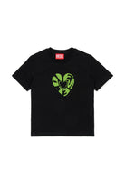 Stretch jersey short-sleeved T-shirt. The Diesel Heart graphic on the chest, with its faded effect from undefined piping, gives the garment a lived-in, contemporary look.
