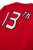 Wool-blend long-sleeved pullover with horror-inspired jacquard lettering. A garment with a strong character, perfect for those who like to stand out.
