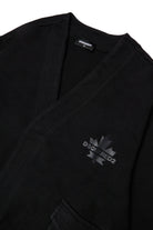 Cardigan-style sweatshirt with Maple Leaf logo and utility patch pockets on the front. An oversized fit garment ideal for a relaxed yet sophisticated look.