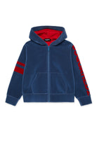 Long-sleeve flocked neoprene hoodie embellished with Dsquared2 logo and contrasting details on the sleeves. The technical fabric and clean lines make it perfect from leisure to urbanwear.