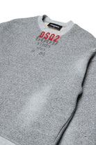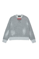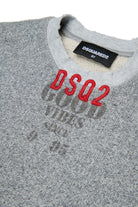 Long-sleeve mélange crewneck sweatshirt with a lived-in effect with sprays and breaks, giving the garment an authentic and rebellious soul. The DSQ2 logo embroidered on the collar adds an iconic detail to a garment with a strong and distinctive aesthetic.