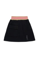 Short fleece skirt with elasticated waist stripes for a sporty-chic touch. The front pocket gives an original design, while the contrasting handmade embroidered Marni logo adds a recognizable and refined detail.