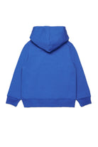 Long-sleeved hooded sweatshirt with an essential and modern design. The institutional logo in a contrasting color mini version on the chest and ribbed hem give character to the garment, perfect for a casual yet sophisticated look.