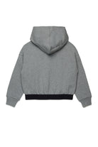Long-sleeved hooded sweatshirt features a logoed elastic at the bottom. The oversize fit gives a contemporary and relaxed feel, perfect for a casual yet refined look.