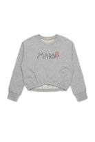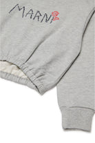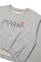 Cropped crew-neck long-sleeved sweatshirt. Marni Flower logo embroidered in contrasting color on the front. Asymmetric hem with elastic. Made of 100% cotton.
