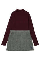 Mini dress with ribbed wool-blend knit body and tweed bottom with front pleat for an original two-in-one effect. A mix of textures perfect for contemporary looks.