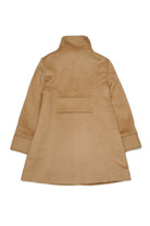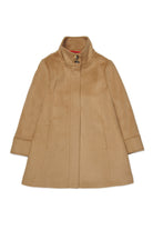 A-shape long sleeve wool-blend coat. The flared silhouette and minimal design make it a practical and refined garment, perfect for cold days. The high collar protects and adds a touch of style.