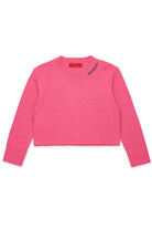 Long-sleeve boxy pullover in wool-blend knit. Contrasting color embroidered logo on the neck and side slit give the garment a modern and recognizable look. Perfect for casual everyday looks.