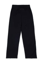 Straight-leg fleece pants with multiple zip pockets and a raw-cut hem at the bottom. A garment that combines comfort and practicality, perfect for kids who want a dynamic, characterful look.