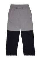 Two-tone fleece pants with re-cut construction typical of MM6. The design simulates the assemblage of two garments deconstructed and reassembled, with the raw cut bottom creating an original and modern look.