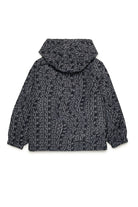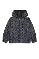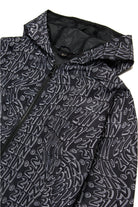 Long-sleeved windbreaker jacket with all-over print Glitch. Fixed hood. Front welt pockets. Front zip closure. Elastic on cuffs. Inner mesh lining.