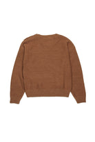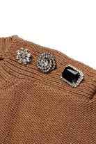 A wool-blend pullover in a reverse-knit shaved knit, combining comfort and style. The three jeweled buttons on the shoulder, each one different from the other, add a touch of elegance and originality, making the garment unique and sophisticated.