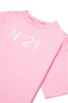 Crew-neck short-sleeved cover-up dress in jersey. N°21 Institutional logo in contrasting color on the front. Side splits. Made of 100% cotton.