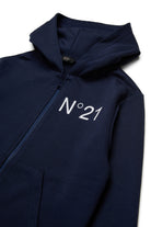 Oversize full zip hooded sweatshirt, a comfortable and versatile garment. The N°21 Institutional logo, applied heart side in contrasting color, adds a touch of style. Perfect for a casual and relaxed look.