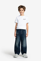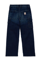 D-Bart relaxed fit jeans in dark blue denim with abrasions with a utility/work attitude. A relaxed oversize silhouette from comfortable waist to ankles, soft on the leg. A perfect jeans for those who love comfort with the unmistakable Diesel DNA.
