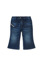 D-Heki-B bootcut fit jeans in dark blue denim. A pattern that hugs the body from hips to knees with a wide flared bottom. A retro style that gets a makeover.