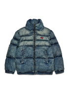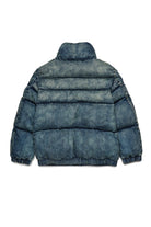 Short padded jacket in dirty effect denim