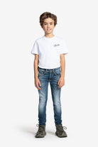 1979 Sleenker skinny fit jeans in dark blue shaded denim with a pop attitude. A very fitted but comfortable model that follows the body's physicality by comfortably wrapping the leg like a second leather. A must-have jeans in every boy's wardrobe.