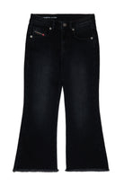 D-Prilla bootcut fit jeans in black shaded denim with a punk attitude. A model that wraps the body from the hips to the knees with a wide flared bottom. Cropped jeans ideal for adding a bold, grunge feel to any look.